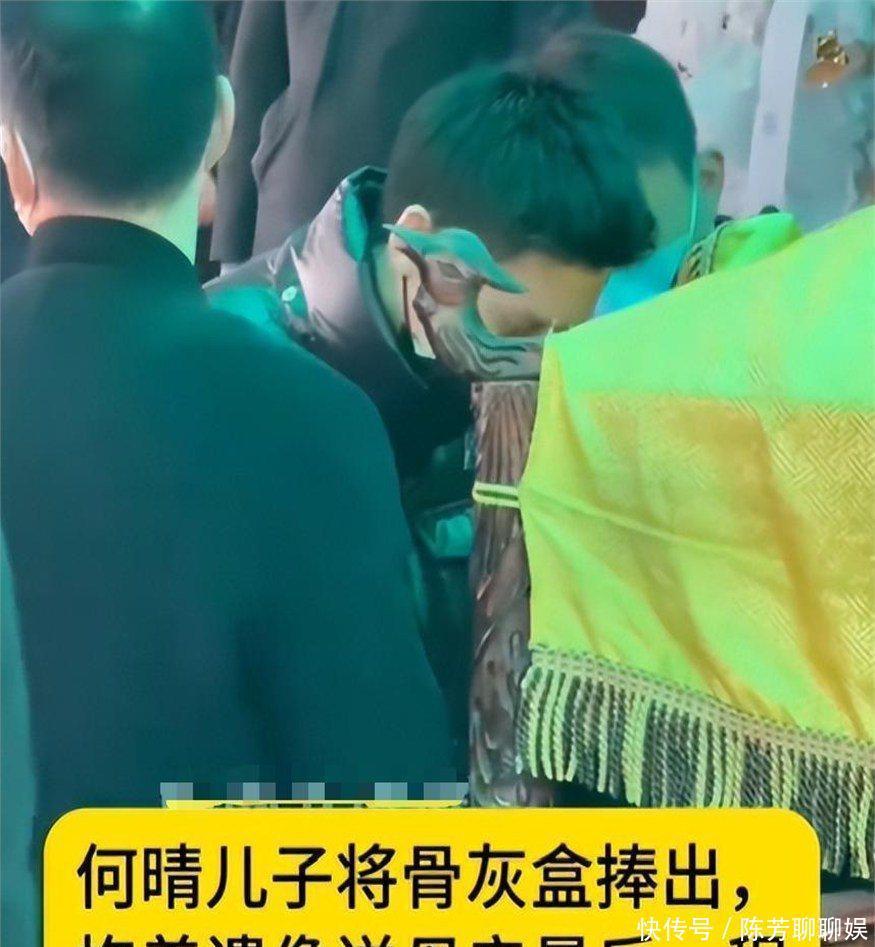 告别仪式结束,何晴遗体火化。她的儿子许何亲手捧着母亲骨灰盒,身旁有人帮忙撑伞,避免骨灰盒被阳光直射。旁边早已备好了轿子等候,许何小心翼翼地将骨灰盒放上轿子,仿佛稍有不慎就会磕碰到母亲,让她疼着。