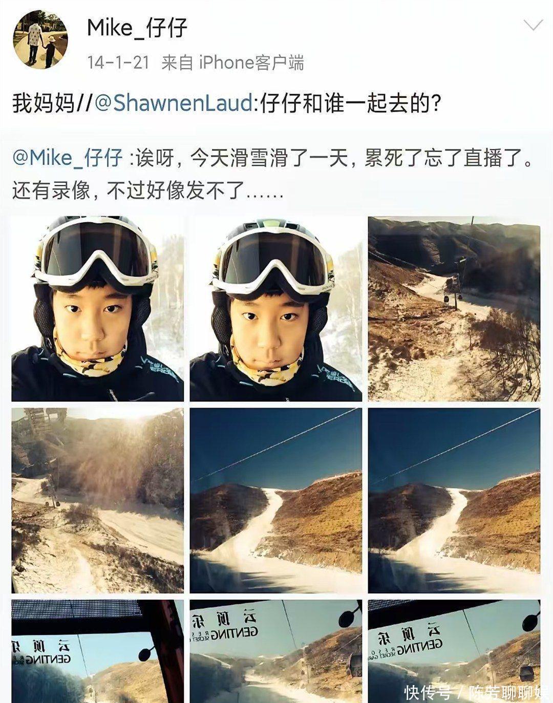 2014年初,许何开心地晒出自己滑雪一天的自拍照,还懊恼没进行直播和录像。他这抱怨的模样,一看就是在爱意中长大的孩子。有人问他和谁一起去滑雪,许何只回了三个字“我妈妈”。